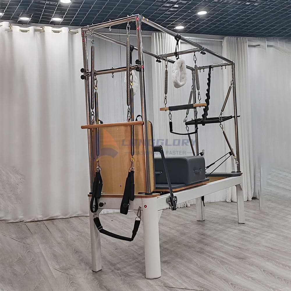 Опремен со прилагодливи шипки за притискање, потпирачи за раменици, стапала и висококвалитетни пружини, алуминиумскиот пилатес Cadillac Reformer обезбедува непречена контрола на отпорот и приспособливи опции за тренинг. Пространата кочија и удобното полнење го подобруваат корисничкото искуство за време на пилатес тренинзи, сесии за физикална терапија и професионални упатства за пилатес.